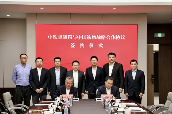 中鐵集裝箱副總經(jīng)理李翀宇,中鐵集裝箱綜合部、多式聯(lián)運(yùn)部、市場營銷部,中鐵聯(lián)集公司,中鐵多聯(lián)公司,中國鐵物物流產(chǎn)業(yè)發(fā)展中心、綜合辦公室、運(yùn)營管理部、規(guī)劃與投資部相關(guān)負(fù)責(zé)人參加簽約儀式。